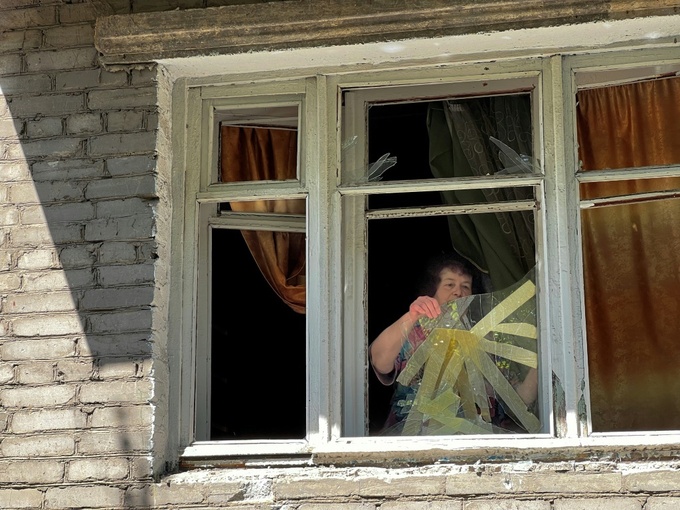 Outside the next block, Natalya Petrova had come out in her house coat to survey her broken windows and shrapnel-pitted facade.