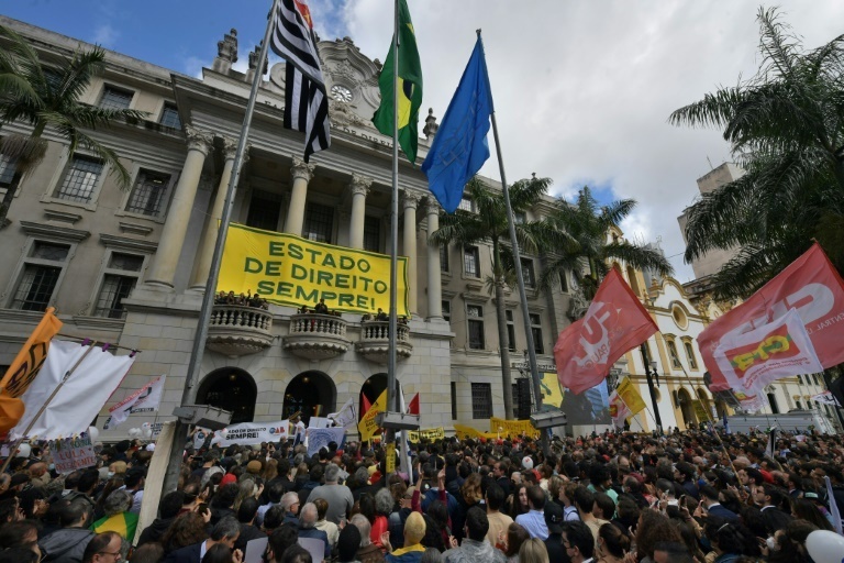At the university gathering, a video was shown of Brazilian artists reading out of a petition "in defense of the democratic state of law."