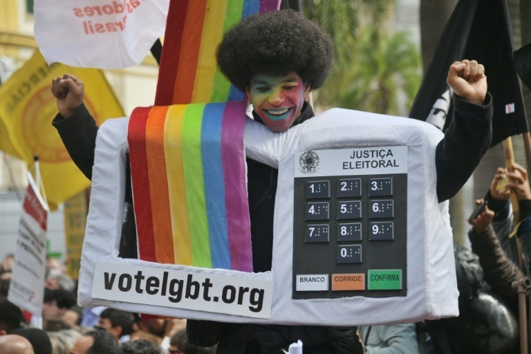 Some were dressed as electronic voting machines, whose exclusive use Bolsonaro has claimed makes cheating easier.