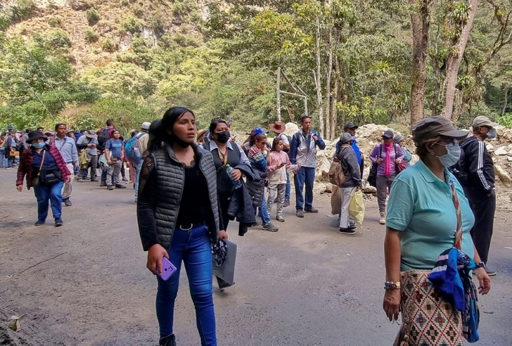 Friday's protests took place in the neighboring town of Machu Picchu, formerly called Aguas Calientes, where visitors arrive by train before boarding minibuses that transport them to climb the ancient site through a narrow mountain pass.