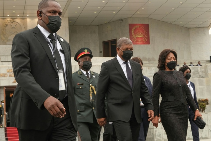 Dignitaries including South Africa's President Cyril Ramaphosa, the Democratic Republic of Congo's President Felix Tshisekedi and Portugal's President Marcelo Rebelo de Sousa filled rows of white and gold seats.