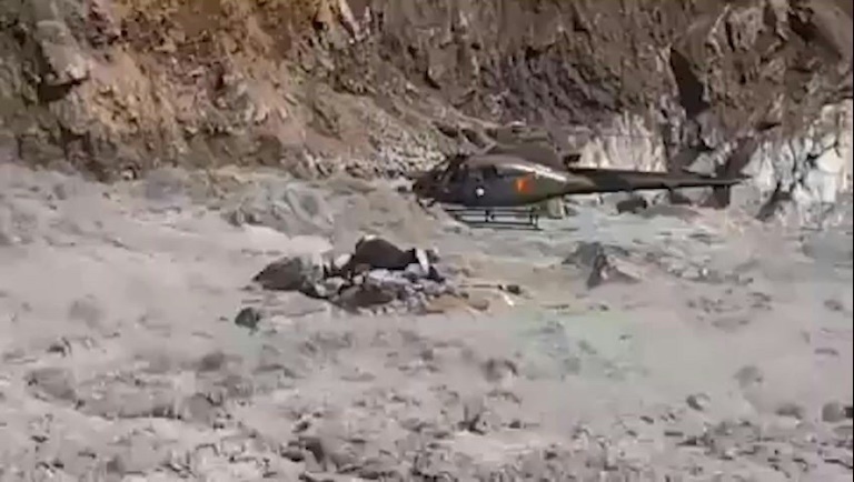 A helicopter supplied by the provincial government's chief minister –- not built for rescue missions -- has helped to pull more than 350 people from villages, carrying up to double the recommended number of passengers.