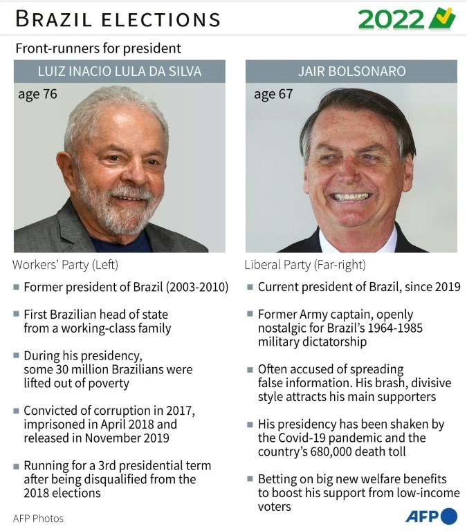 Leftist ex-president Lula, 76, seeking the votes of Brazil's millions of downtrodden, still leads with 45 precent of voter intention, according to pollsters Datafolha.