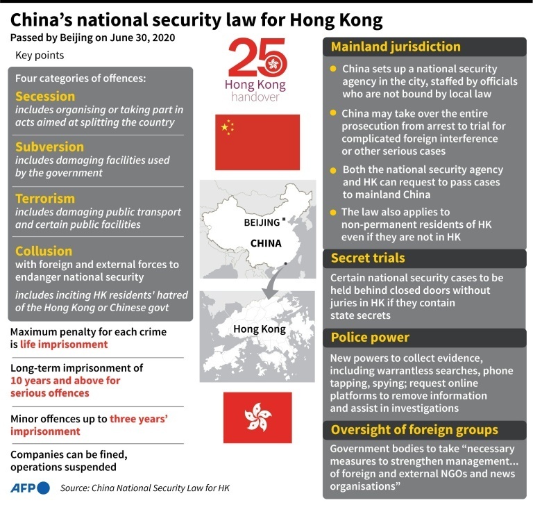 They join a growing list of residents jailed under a colonial-era sedition offence which authorities have deployed alongside a national security law introduced by Beijing in 2020 to stamp out dissent.