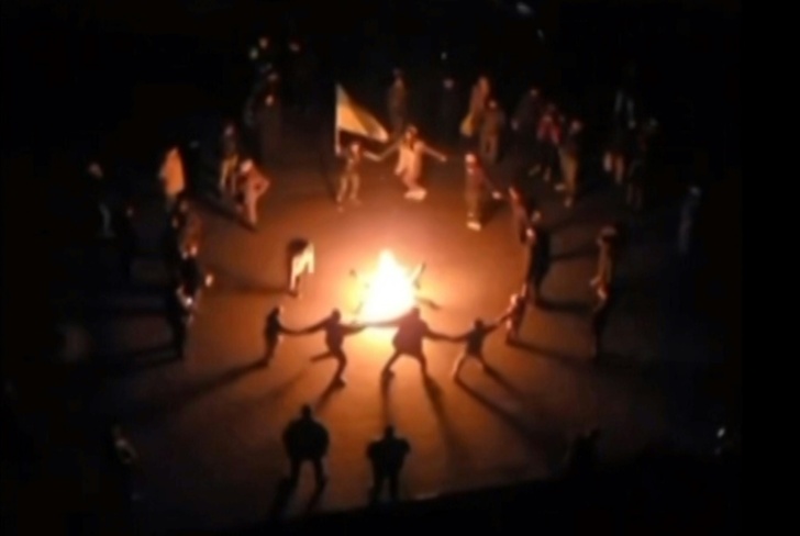 Residents queued to get food, and many adults and children walked around wrapped in Ukrainian flags.
