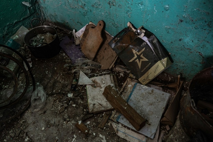 Russian soldiers appear to have used the school as a makeshift base, leaving a filthy mattress and a uniform behind.