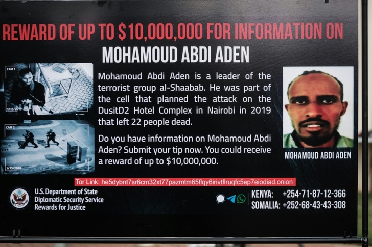 She said the US was offering a reward of up to $10 million for information leading to the arrest of Aden, described by the embassy as a Kenyan national, and others accused of involvement in the hotel siege.