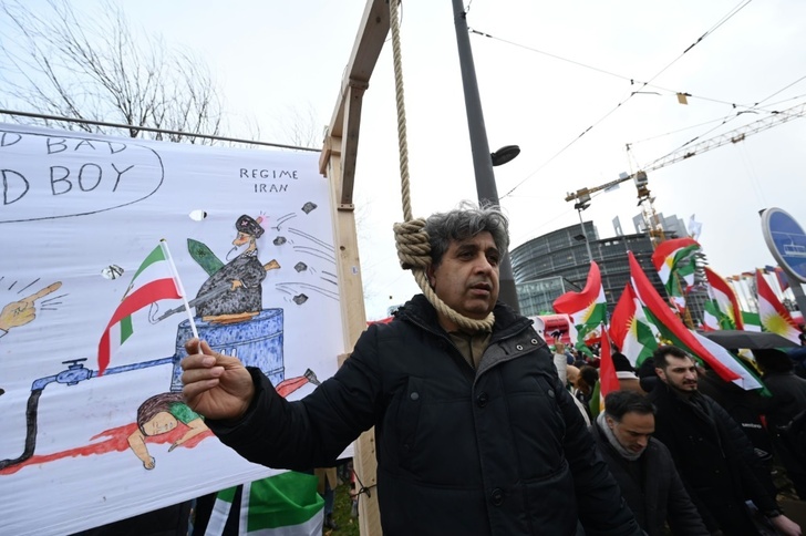 "We are gathering to make Iranian women and men heard in Europe and ask the European Parliament to carry on standing on the right side of history," said Swedish parliament centrist deputy Alireza Akhondi who organised the rally.