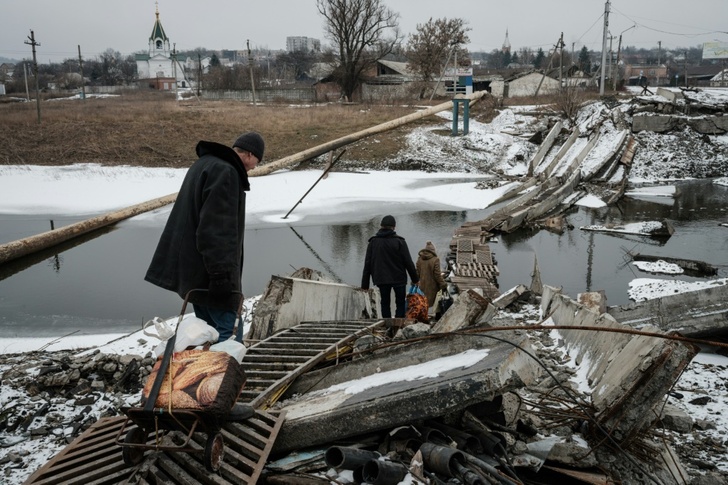 Shevchenko, who lives on the eastern bank, risks her life every day when she crosses the bridge to get water.