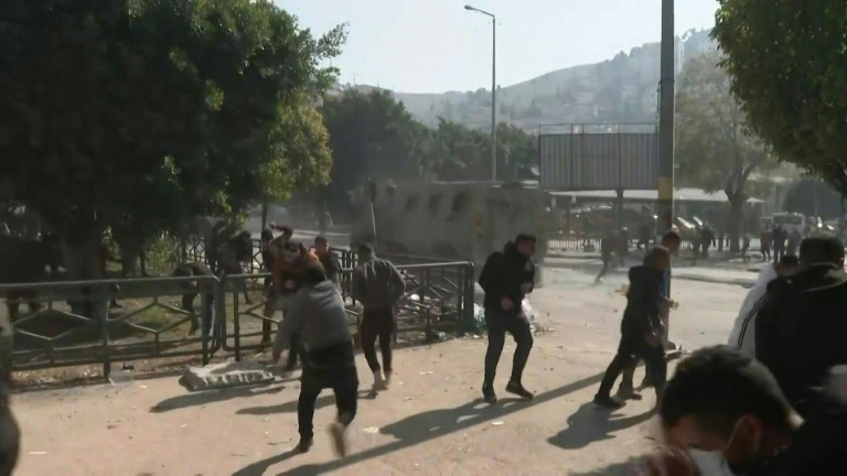 An AFP journalist saw Israeli forces fire tear gas at Palestinians, who burned tyres and threw stones at military vehicles.