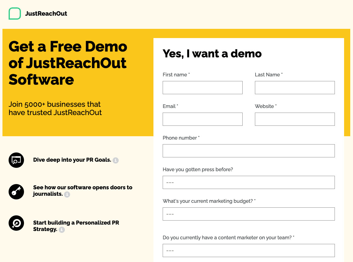 To cite a specific example from our case, our qualification form asks if the lead has gotten press before, as this is a strong indicator that they’ll be able to get press again.