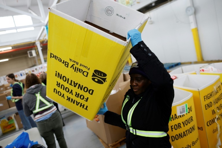 Of the newcomers to the 128 food banks across the Toronto area affiliated with Daily Bread, many have full-time jobs but still can't seem to make ends meet, Hetherington said as volunteers sorted through donations at its depot in a suburb of Toronto.