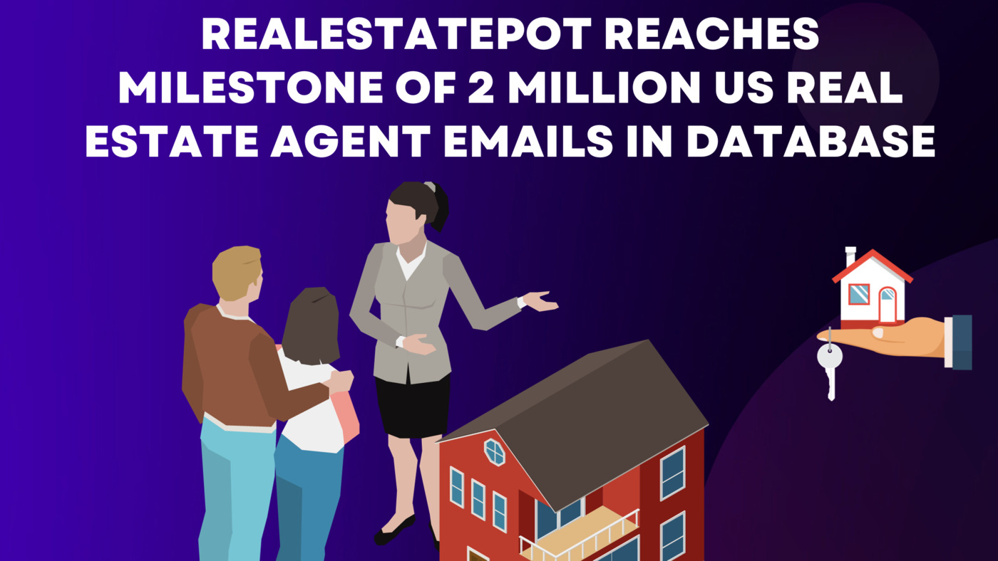RealEstatePot, a provider of real estate agent email list, has announced that the company has achieved the milestone of accumulating over 2 million email addresses of USA real estate agents within its database. The company said that the database was months in development and thanked the data mining professionals working in the team for their effort.