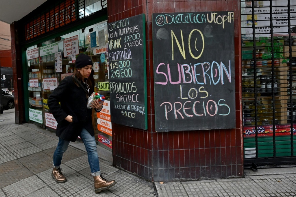In the Villa Crespo neighborhood a shop selling natural products has a sign informing customers it had not pushed up prices.