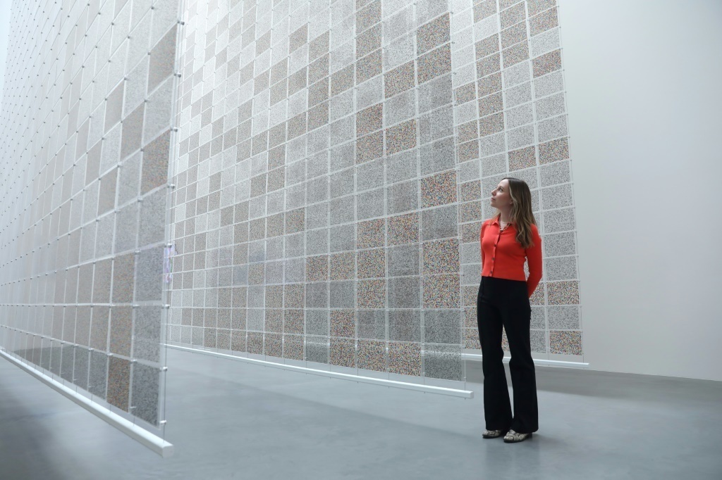 At the Newport Street Gallery in south London, huge panels are covered with 10,000 unique spot paintings on A4-sized paper.