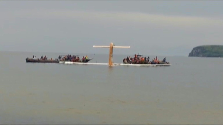 Emergency workers attempted to lift the aircraft out of the water using ropes, assisted by cranes as residents also sought to help.