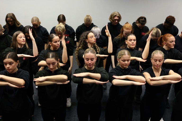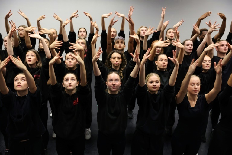 Waff's latest "murmuration" dance was performed by students from Britain's Bird College of Dance and Musical Theatre near London.