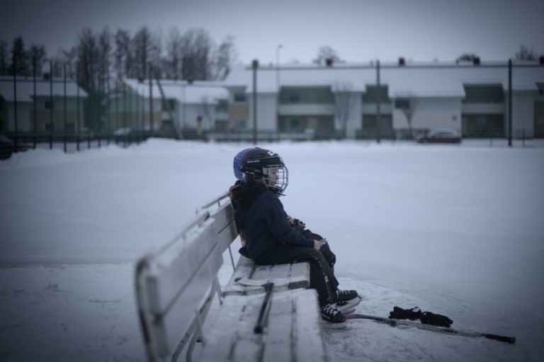 Snowflakes dance in the massive spotlights at a public ice hockey rink in the Finnish city of Oulu, against the echoing sound of pucks bouncing during a precious practice session for a local youth team.