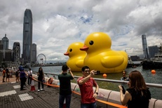 Two giant yellow ducks meant to signify good fortune in Hong Kong ran into bad luck of their own after one was deflated Saturday to protect it from the heat.. Hofman's Rubber Duck series has made appearances in major cities since its 2007 debut, and made headlines in Hong Kong when it arrived in 2013.