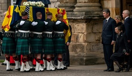 Queen Elizabeth II's coffin, which will lie in state in London for four days later this week before her funeral next Monday, was reportedly crafted more than three decades ago.. - Final journey - Queen Elizabeth II's coffin first emerged on Sunday, covered with the Scottish royal standard and a wreath of white heather, dahlias and sweet peas from the gardens of the Balmoral estate where she died Thursday.