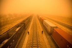 Air pollution soared in Beijing on Wednesday as the Chinese capital was hit by a huge sandstorm, and dust also shrouded other parts of the country in a sickly orange haze.. The official air quality index in Beijing hit the maximum level of 500, indicating "severe pollution", though some unofficial readings were nearly twice that figure.