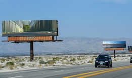 Out in the California desert, nestled between billboards advertising hairline restoration and varicose vein removal, six hauntingly beautiful images of steel bridges and sunsets loom incongruously over the dusty highway.. California-raised Nichols was a keen photographer who trained his camera on the bridges, murals, neon lights and fiery sunsets of his adopted home city of Memphis, exploring the connections between people and their surroundings.