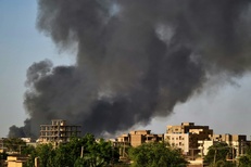On a sandy lot below a Khartoum apartment building, helmetless Sudanese soldiers in a mishmash of uniforms raised their fists as machine gunners blasted away from atop two small trucks.. Soldiers shouted as machine guns spewed fire from atop a pickup truck, a small armoured car, and a tank beside some trees near a billboard for a car showroom.