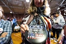 Draped in a colorful campaign banner and wearing an oversize "God, Guns and Trump" medallion around her neck, Angela Wilkinson insisted at a political rally that her hero will oust Joe Biden from the White House next year.. Many including Wilkinson, a 48-year-old insurance agent who drove several hours from the northeasternmost state of Maine to see Trump speak, said at the rally in a Manchester hotel ballroom that they were relishing the prospect of another Biden-Trump showdown.